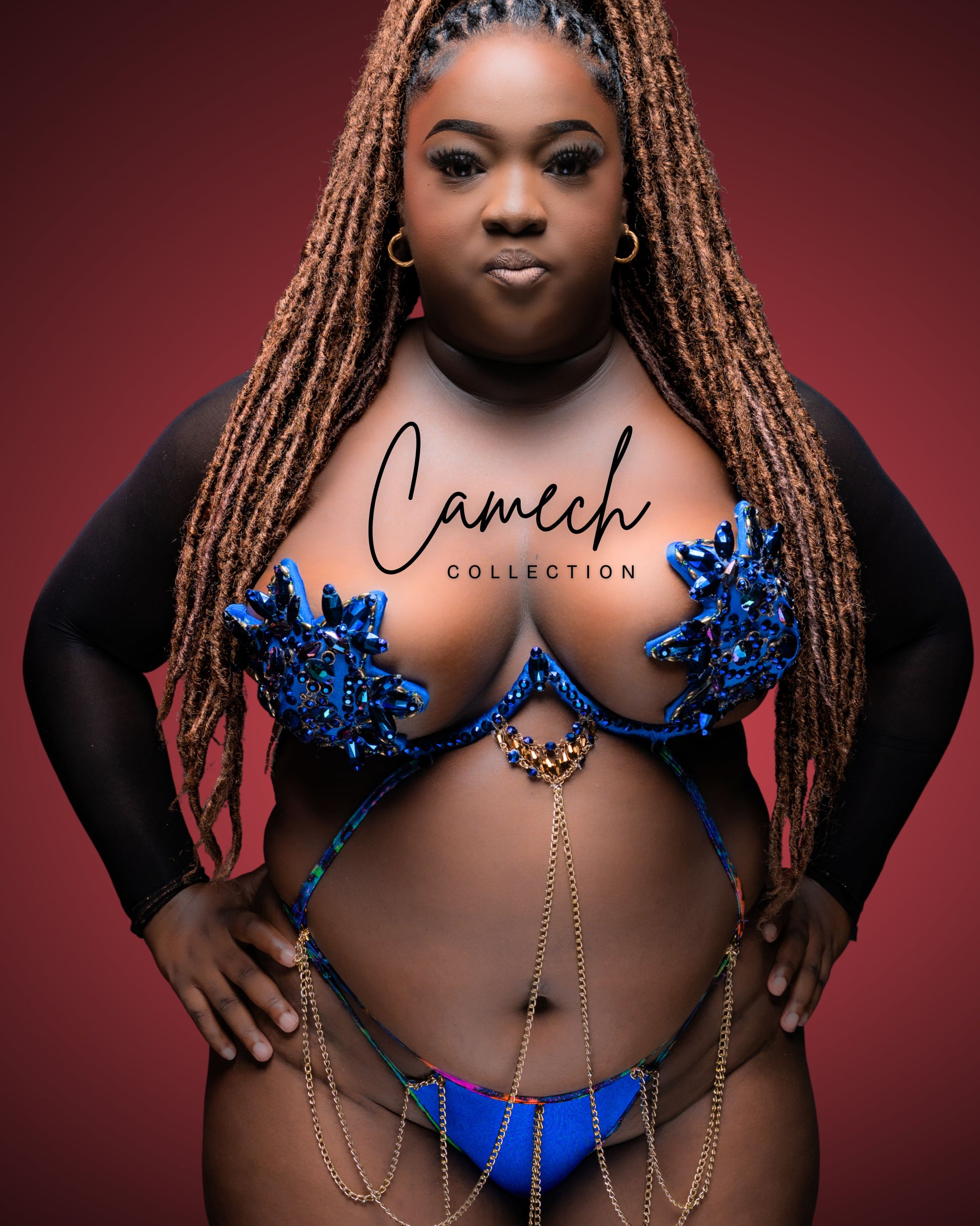 Shine on the road in this Royal Blue Multicolour Saphhire Monokini, featuring a wire bra, rhinestones, gems, and dramatic sleeves. Crafted from sparkling fabric, it’s handmade for a perfect carnival-ready fit.