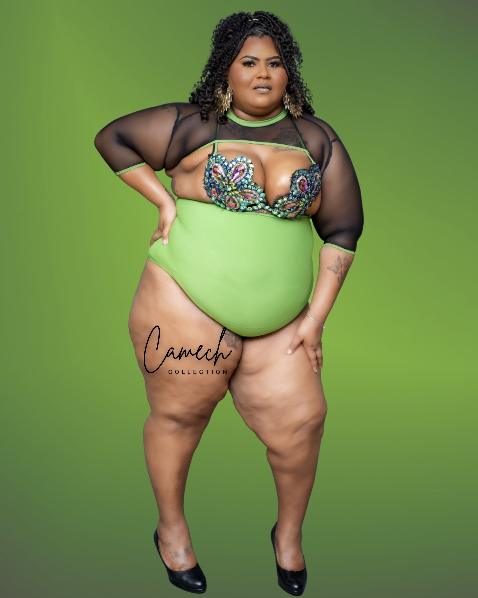 This item includes a plus-size bottom, sleeve and wire-bra sizes D-DDD